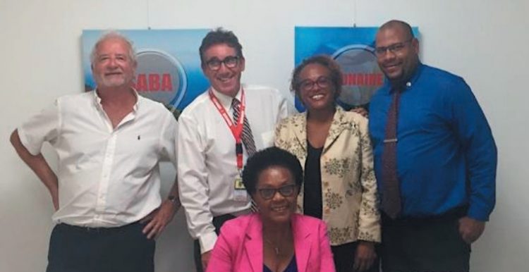 Les partenaires Caribsky poursuivent leurs discussions d’alliance. De gauche à droite : Serge Tsygalnitzky – DGA Air Antilles, Michael Cleaver – DG WINAIR, Julie Reifer-Jones – DG LIAT (assise), Audra Walker – CCO LIAT, Shavar Maloney – Directeur des communications internes de LIAT