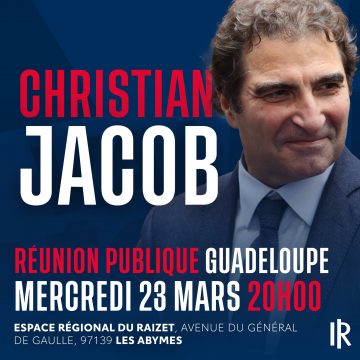 Déplacement de Christian Jacob aux Antilles et en Guyane du 22 mars au 29 mars 2022 Dans le cadre de la tournée des fédérations Les Républicains engagée au début de son mandat, le président du mouvement Christian Jacob se rendra en Guadeloupe, à la Martinique et en Guyane du mardi