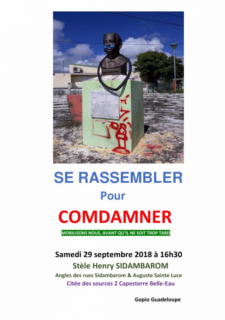 Le maire de Capesterre-belle-eau, Joël Beaugendre et son conseil municipal condamnent avec la plus grande fermeté l’acte de profanation de la stèle Henry Sidambarom perpétré le 21/09/2018