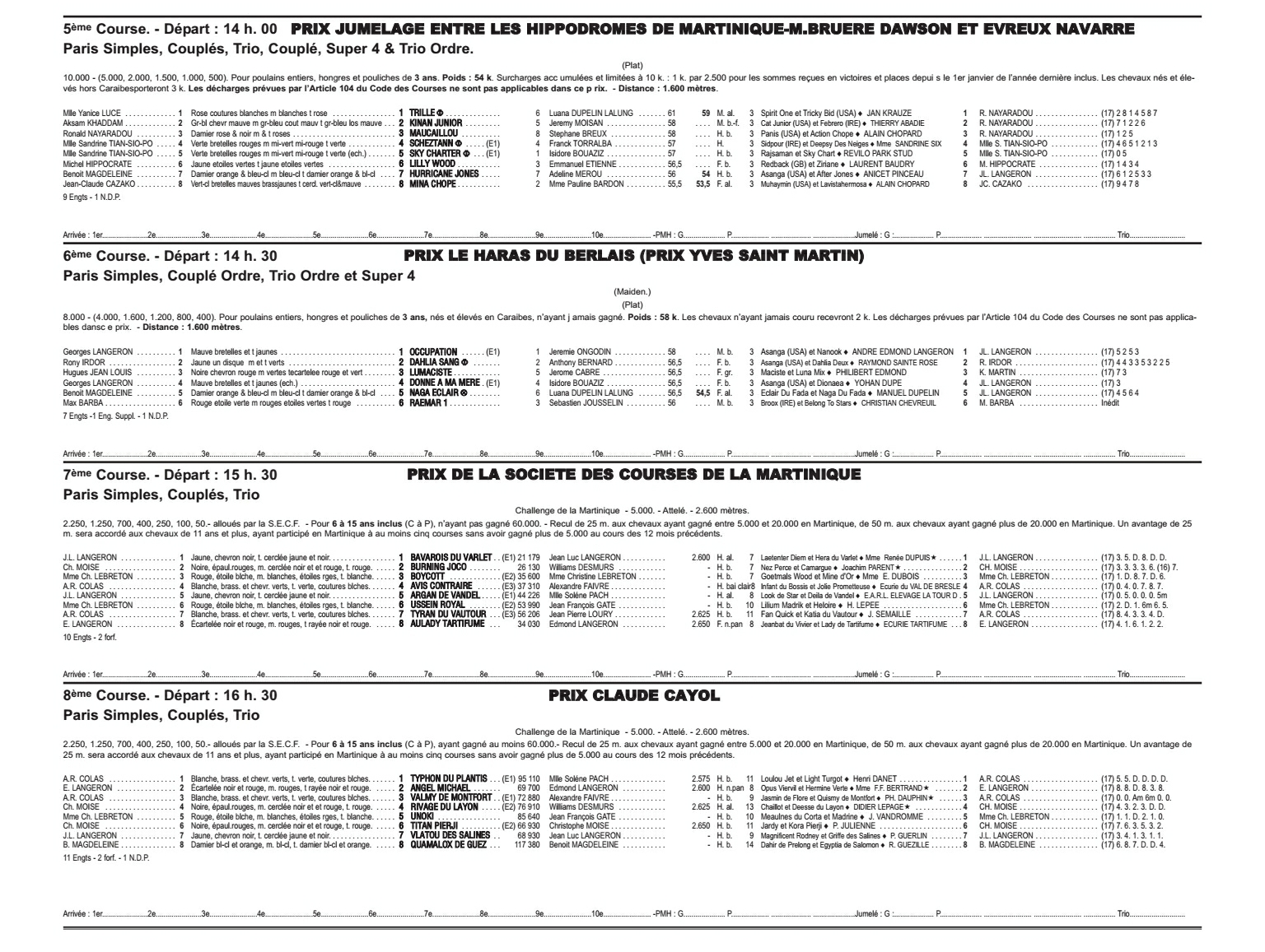 - 6 courses de galop support Premium dont le« Grand Prix de la Collectivité Territoriale de Martinique » support d’un quarte + régional