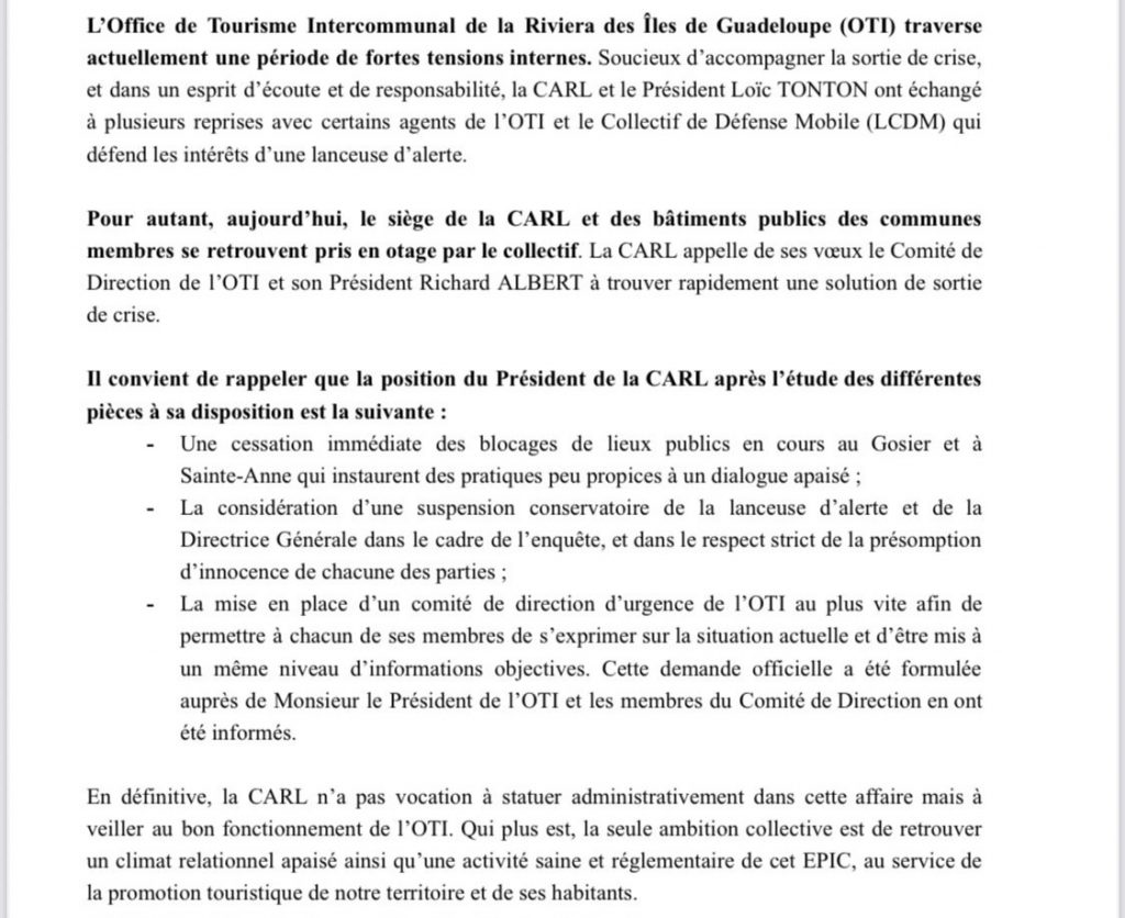 Société Pour une sortie de crise à l’office du Tourisme des îles de Guadeloupe 08 Sep 2025 97land 0 0 60 2